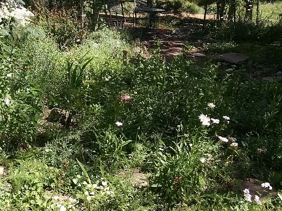 Raised ranch with walkout basement: 1978 sq ft main floor, 1207 lower.  Large deck overlooks open space in back, covered porch in front. Light and bright, with lots of south-facing windows that bring in winter warmth and beautiful meadow views.