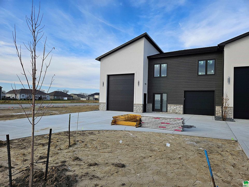 For Comp Purposes, pre-sold, custom designed unit. These homes have numerous customizable layout options. Cutting edge design, easy maintenance, HOA for mowing/irrigation & snow removal, versatile living, working and playing layouts. You have got to check out these "One of a Kind" shouse style living. Base units include: RV garage 18x60 w/ 6" concrete, 24x30 double garage with finished 3/4 bath and laundry on main and staircase to 2nd floor. Double garage could also be work shop or weekend get away. Base unit: Upper level has option of 1 or 2 bedroom layout with kitchen w/ island & pantry w/ appliance allowance, living room and full bath. Upgrades: add main floor bedroom or upper loft room, so 1, 2, 3 or 4 bedroom options, pricing available upon request. All base units have 2 baths, and covered patio and walk-out upper level covered trex deck. South Dakota residency, convenient location, everything under one roof. Are you looking for a garage w/ a house attached, well this is it!!!