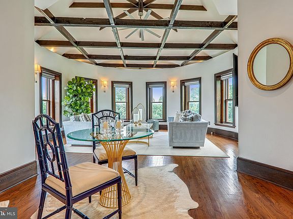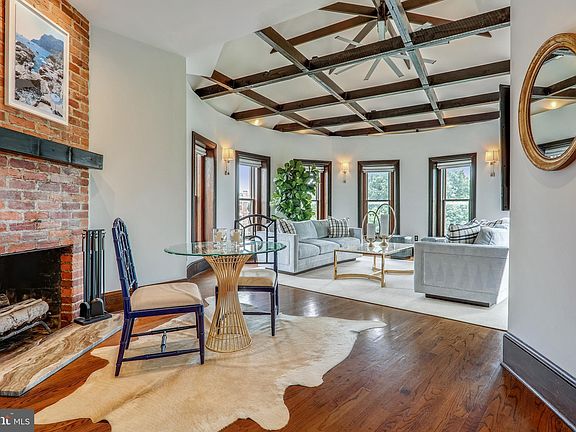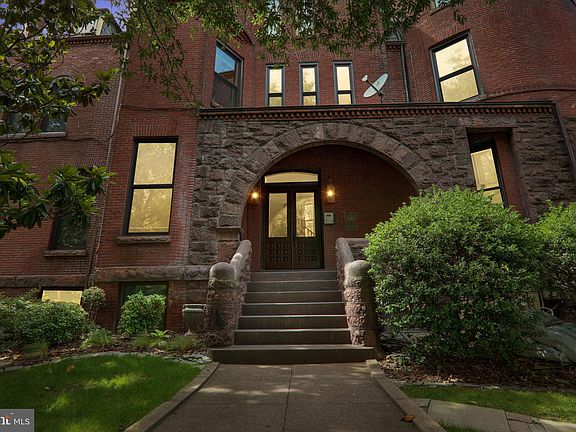Behind the 1886 Romanesque Revival facade of this four-unit condo you will find all the modern conveniences you would expect in 2023. Unit #4 fills the whole top floor and features a circular living room with a wall of windows that provide fabulous treetop views of the cherry trees and colorful brownstones of Logan Circle. The updated kitchen offers the timeless design of stainless steel appliances, custom blue cabinets, and white quartz waterfall counters. Adjoining the kitchen is the exposed brick wine cellar which the current owners have used as a pantry. The refinished hardwood floors in the dining area gleam in the sunlight that pours in from all directions. In winter the first of two fireplaces in the home can cast a warm glow in this space. The primary bedroom suite features the second fireplace, a large closet with barn doors, and a cozy alcove overlooking P St. The primary bath includes a private WC, glass enclosed shower, quartz dual sink vanity, the laundry center, and an herb garden window box overlooking Rhode Island Ave. The second bedroom loft space with a skylight is also well suited for a home office. The Lutron motorized shades throughout are timed to wake you with the morning sun. There is a second bathroom with a full-size bathtub and private WC on the main level. Explore your new neighborhood and you will find that Metro, CVS and Whole Foods (necessities); Miss Pixie’s Furnishings and Whatnot, Salt and Sundry (shops); Le Diplomate, Barcelona, Colada Cuban Cafe, Pearl Dive Oyster Bar (restaurants); and the Black Cat (music venue) are all a very short distance away.