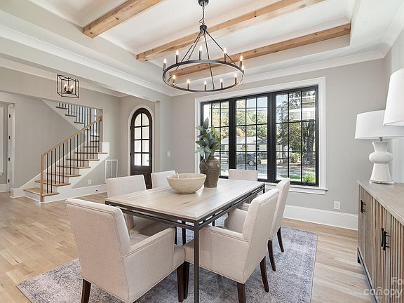 Looking for a unique custom-built home? Look no further! This home boasts over 3800 sqft & features 4 bedrooms, 3 full baths, gourmet kitchen w/complete stainless steel Kitchen-aid appliance package. Slide out microwave, beverage fridge, 6 burner+ gas range, & a 6' island w/farmhouse sink, dishwasher, & custom cabinet and floor lighting. The island has bar seating for 4, making it perfect for entertaining guests. Form, function, detailed craftsmanship, & high-end finishes are found throughout. All cabinets in the home were custom-built in NC. Featuring White Oak hardwood floors & tile that add warmth & sophistication to every room. On the main level, you'll find a breakfast room, formal dining, great room with fireplace, & a guest bedroom with full bath. Additionally, the home has a covered outdoor screened porch with ceiling fans & dual access with two French doors, expanding your living space. Situated on a .30 acre corner lot w/side load garage, driveway, & fenced yard for privacy.