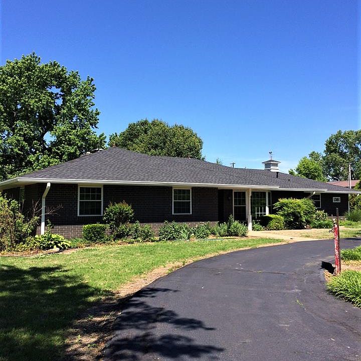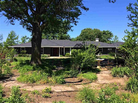 This lovely home has an open field view to the west. It has unique stairs to the finished basement, sunken living room w/ stone fireplace. Formal dining or second living has a beautiful bay window. Dining room has a built-in-hutch & sliding doors that lead to patio. Bedrooms have large closets & shelving. Built-ins throughout home. The 50' x 48' +/- brick garage has a large open area with a kitchen, bath, office, concrete safe room, 3 car garage & more. Paved circle drive.