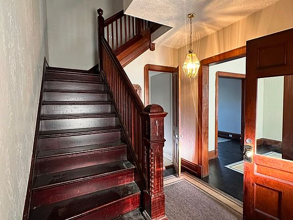 This is a three bed one and a half bath older building with very nice woodwork throughout 10 foot ceilings are higher and a huge basement. There is a back deck and the lot behind the property we own as well. We do not allow section 8 at this property and this property does not allow pets. It is just a 12 month lease. There is no smoking on the property no subleasing as well as no pets