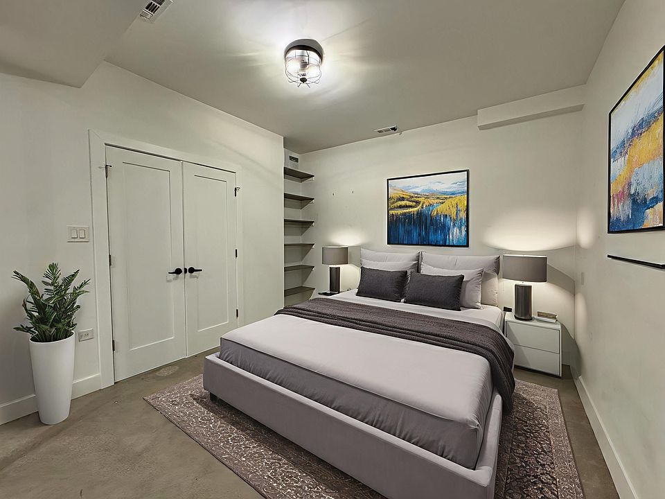 Massive studio with separate bedroom, living space and kitchen. Brand new kitchen and baths. High end cabinets. Quartz counters. Stainless appliances with dishwasher. In unit laundry. Custom bathroom. Exposed Brick. Lots of built in shelving. Huge bedroom closet. So much more!
