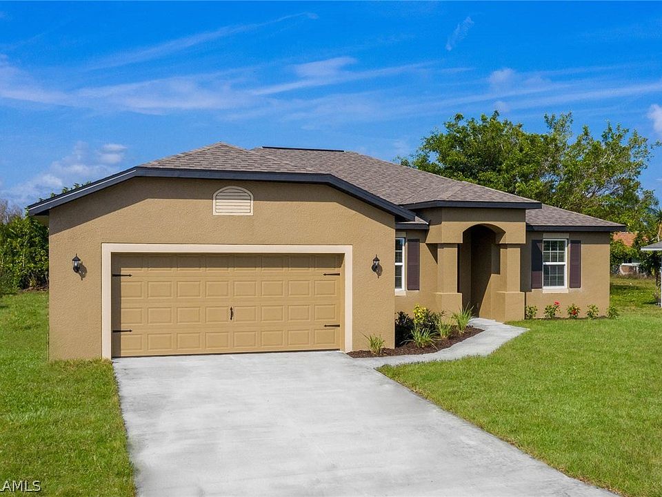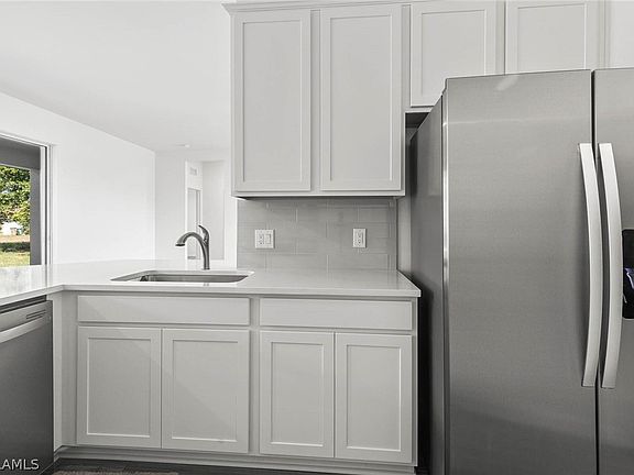 Home is under-construction and the expected completion date is 4/12/2023. The Islamorada is a spacious oasis located in the desirable area of south Cape Coral. This new-construction home hosts 4 bedrooms and 2 full bathrooms, as well as an abundance of living space and a plethora of luxury upgrades. Stainless steel Whirlpool® appliances including a refrigerator with ice maker, spacious quartz or granite countertops, 42” upper cabinets with crown molding, an undermount kitchen sink, Moen® faucets, a convenient outlet with USB charging capability and an attached two-car garage with a Wi-Fi-enabled garage door opener. The Islamorada showcases a master suite with a walk-in closet and a double-sink vanity. In addition, residents living in Cape Coral will enjoy convenient access to the best shopping, dining and entertainment around.
