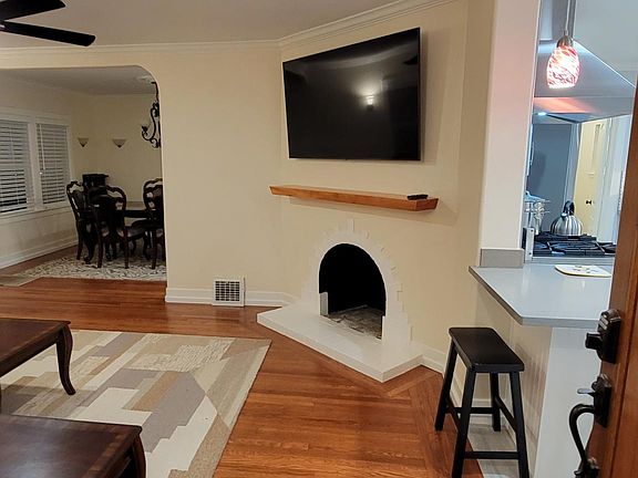 Gas fireplaceProfessional kitchenTile floorDining roomWalk-in showerTop to bottom renovationHardwood floors
