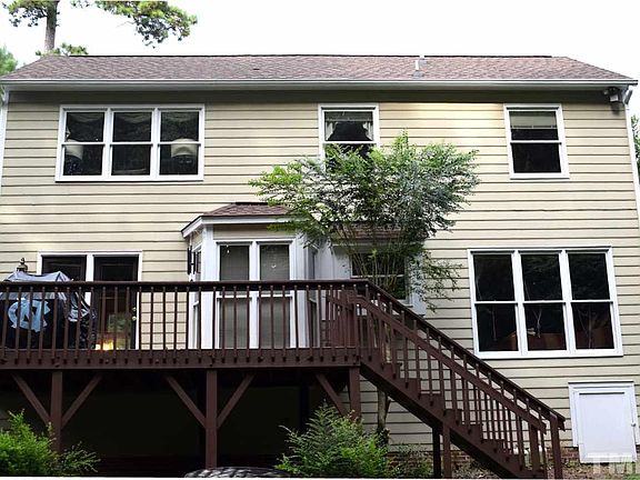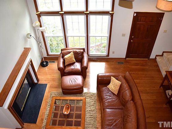 Transitional/open floor plan. Eat-in kit. open to diningrm. Stainless steel Frigidaire washer, dryer, stove and frig. stay! Quartz composite countertops in kitchen! Hardwood floors in kit. diningrm, livingrm. 1st floor master bedrm with jetted tub in master bathrm. 2nd floor has 2 bedrms and flexible loft area space that overlooks livingrm. 2 yr old roof. Community pool, playground, walking trail. Minutes to shopping and 540. Private yard backs up to park. $500 toward warranty program to be provided.