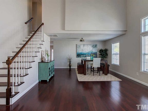 This awesome Auburn home is the one you've been waiting for! Wonderful open floor plan features high ceilings for beautiful light, gracious living and dining spaces, gleaming hardwood floors, granite counters, stainless appliances, tile backsplash, and an enormous master suite with sitting area that can be converted into a 4th bedroom. All this plus a fenced corner lot, fantastic community pool and play areas, and amazing location close to freeways, restaurants, Southpoint, Duke, UNC, RTP.