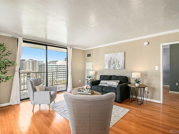 Welcome to city living at its finest! This 10th-floor end unit at the Denver Tower offers breathtaking downtown city views from its private balcony. This gem features an open concept layout with a breakfast bar, creating a perfect space for entertaining. The primary suite features 2 large closets, linen closet, great natural light, and an ensuite bathroom. With a seamless, yet sizable living space, this pet-friendly condo exudes a sense of style and convenience. Deeded covered parking in the secured garage and an additional storage locker is also included for ease. Access to public transportation is also nearby to get around the city or across town in a breeze. Take advantage of the nearby bike trails along Cherry Creek, common outdoor spaces, or explore the city's main attractions including Denver Center of Performing Arts, Ball Arena, Empower Field, Art Museum, Meow Wolf, Sante Fe Art District, Auraria Campus, many bars, restaurants, and coffee shops are just a short stroll from your doorstep--the grocery store is just downstairs! Additionally, the HOA includes, water, trash, recycling, snow removal, bike storage, clubhouse, pool, hot tub, fitness center, theatre and more. Don't miss the opportunity to experience the best of city living in this prime location!