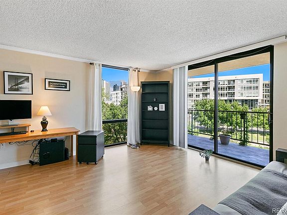 This meticulously maintained corner unit is located in a prime location, just one block from the convention center. As a resident, you'll have access to fantastic community amenities, including a pool, gym, business center, secured parking, and an on-site grocery store. Enjoy the vibrant energy of Denver living with nearby attractions such as the Art District, Auraria Campus, Museums, Library, Broadway, and Cherry Creek Trail. The unit boasts a spacious main room with a bright white kitchen, island, and eat-in bar. There's a perfect nook for a home office and ample living room space for your furniture. Step out onto the east-facing deck, ideal for morning coffee or evening drinks. The large bedroom comfortably fits a king bed and features two closets, including a walk-in. A trash chute is conveniently located just steps away from your front door. Ready to call this beautiful space home? Please inquire for an immediate tour. Owner pays Flat fee for parking and utilities: Parking: $250 Gas/Sewer/Water/Trash: $250