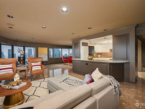 Resort style living at Seattle's premier First Hill Plaza! Enjoy breathtaking City, Mountain & Puget Sound Views from this sophisticated & elegantly updated SW corner unit. Freshly painted with designer palette. Open floor plan, updated chef's kitchen & primary suite with walk-in closet, luxurious 5 piece bath & adjacent office. Spacious 2nd bdrm + full bath & tons of great storage throughout. 2 car parking in garage w/add'l large storage unit. First class amenities include 24/7 concierge, top floor fitness center, indoor pool, jacuzzi, hospitality suite, and deck plus beautiful outdoor veranda and bbq area with tennis/pickleball court, Lobby remodel to be completed in Spring of 2025.