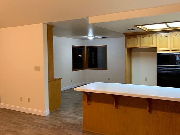 Sunny Southwest on Large Lot. This 4 bedroom, 2 bath home has fresh 2 tone paint and is in excellent condition. It has beautiful new hardwood laminate floors, plush new carpet, custom cabinets with corian counters, large covered patio, 3 car garage with backyard drive through, RV parking and beautiful landscaping.