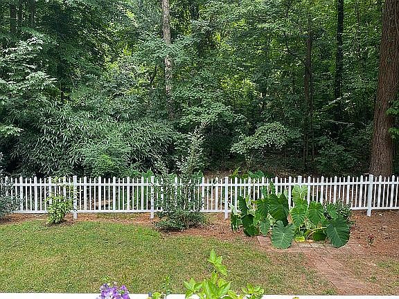 This attractive 3 bedroom, 2.5 bath, 2 story single family home is off Cary Parkway making it easy to travel to Chapel Hill, Raleigh, and Apex. It presents uncommon privacy afforded by greenspace and wooded areas. Briarcliff Elementary is 1.3 miles away, E. Cary Middle is 2.9 m., and Cary High is 2.6 miles. The neighborhood boast of Cary's 1st greenway with excellently maintained walking trails starting contiguous to 1301Tarbert Drive. Just across the street from the home is a picnic area plus playground marked by impressive art work at the entrance. Less than two blocks away find tennis courts, a state of the arts baseball field, basketball courts, and an expansive play ground. Across from the Annie Jones Park is a community pool that also has a volley ball court, sheltered picnic tables, tennis courts and a bath house. Rex Healthcare of Cary is a 3 minute drive. Shopping, entertainment, restaurants, banks, and churches are all minutes away. The home features a large living room with new windows to include a picture window looking on to a deck and wooded yard with a fabulous private view. This is a perfect spot to entertain. The eat in kitchen features ceramic floors, slate gray cabinets, pantry, dishwasher, ceramic top stove, and large windows . There is a separate dining room off the tiled foyer. Upstairs at the second floor landing find a full bath, a large shelved closet, and a linen closet, plus attic access. The master bed room runs the length of the home, has a private bath, and a walk in closet. There is a 2nd and 3rd bedroom off the landing both of which have ample closets with one viewing the front yard and the second the privacy of the back yard. There is an outdoor attached storage room. Every room in the house is very clean and newly painted. The 108 planted mature bushes are attractive and nicely maintained. The home has a new roof, no HOA dues, and cost efficient natural gas. Call or text 919-618-5536 to leave your contact information or email (lfflov@gmail.com) for an appointment.