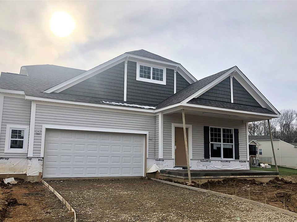 Stunning new constuction ranch home by M/I Homes! Open concept one floor living featuring hardwood flooring, granite counters, SS appliances, gas FP, full unfinished basement w/ plumbing rough in for future finish and bath and large window! Charming front porch, oversized garage and gorgeous stone detail!