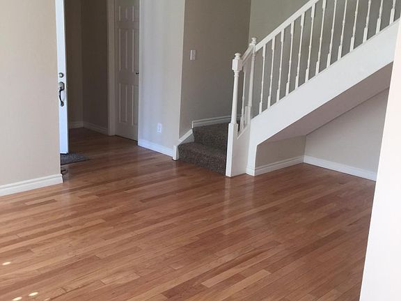 Completely upgraded beautiful two story condo. End unit with 2 Bedrooms and 1.5 bathrooms. Hardwood flooring down stairs and new carpet upstairs. Plantation shutters throughout condo. Gorgeous kitchen with custom cabinets, granite counter tops, stainless steel appliances. Unit has attached 1 care garage (not shared) and 1 parking space. Laundry next store and only shared with 3 other units. Close to shopping, schools, parks and easy access to 91 and 15 freeways. Plus Full Access to HOA Lake, Tennis Courts, Basketball, Pool/Spa, and Picnic Area.