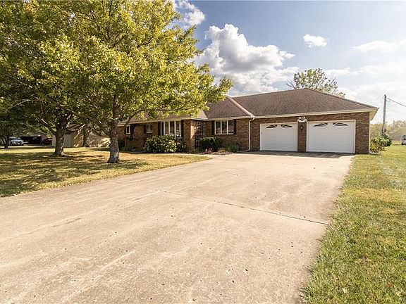This charming and spacious brick ranch-style home with a touch of rustic elegance, located within the city limits but offering a serene countryside ambiance. This 3-bedroom, 3-bathroom house provides level living and an estate-like appearance, complete with lighted pillars for added elegance. The interior of the house features a large kitchen where you can enjoy your morning coffee while overlooking the backyard adorned with trees and open space, couple of apple trees, beautiful gazebo, providing an ideal spot for relaxation and enjoying the outdoors. Inside, the house boasts ample entertaining space, a large sitting room upon entry, which flows seamlessly into a dining room and then into the kitchen. Spacious family room adjacent to the kitchen. The guest bathroom is conveniently located off the family room. The house includes a master bedroom and two additional bedrooms. Lower level of the house is partially finished, with a bathroom with a shower. Additional rooms could to be completed. Lower level houses a storm shelter. 2-car attached garage with a full cement driveway, a perfect blend of comfortable living spaces, a picturesque backyard, and the convenience of city living.