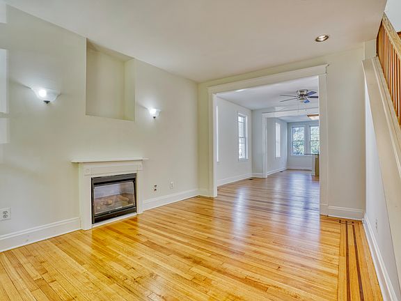-Water is included with rent. -Large end of group porchfront Hampden rowhouse. -Natural light throughout. -Three bedrooms, two full bathrooms. -Two car parking in rear. -Huge master bedroom. -Central heat and A/C. -Finished basement. -Beautiful hardwood floors throughout. -Washer and dryer Owner pays water/sewer.
