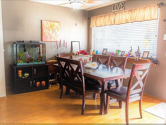 Super cute, Move-in ready house on a large corner lot! This home has 2 Bedrooms and 2 baths, an open Living, Dining, and kitchen area. The floors are a nice wood-look tile and the kitchen has newer cabinets and stainless appliances! Equipped with a security system that features motion, siren, and door charm on all doors leading to the exterior. Outside is a large backyard with a covered patio and a 27 ft around x 52 in height Saltwater above groud pool- Great for entertaining!! The shed is 8ft x 10ft x 4ft was built onsite by Western Buildings. The home has newer gutters, garage doors, roof, & custom wood blinds. Plus- 8 Brand new windows will be installed soon! The seller is offering $500 towards buyers home warranty! Great house in a nice, well established neighborhood. Come check it out!!