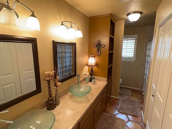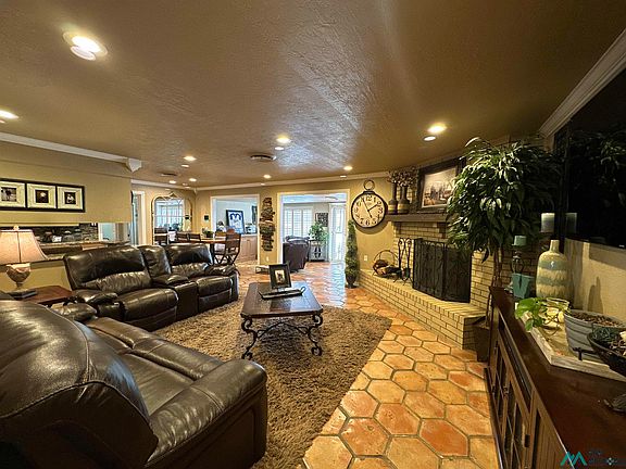 This open concept 4-bedroom, 2-bathroom home features a formal dining area, breakfast nook, 2 living areas, bonus room/game room, and beautiful corner fireplace. This home offers spacious bedrooms with double closets, a large guest bathroom with double sinks, and Saltillo flooring throughout. The large master bedroom features two closets with a luxurious en suite that includes double sinks and a built-in vanity. This stunning home sits on a large corner lot with beautiful landscaping featuring a sprinkler system in both the front yard and back yard. The backyard is an entertainers dream with a basketball court that is equipped with athlete surface and lighting, in ground pool with gas heater, and a beautiful pergola. You will not have to worry with this home that includes outdoor cameras, an alarm system, and a newly replaced roof. Schedule your private showing today to see the many features this home as to offer! Exclusions: Kitchen REFRIG, Tv's & Brackets, outside speakers, hot tub