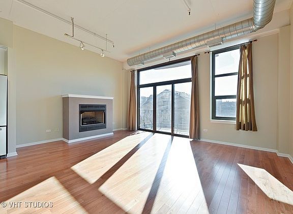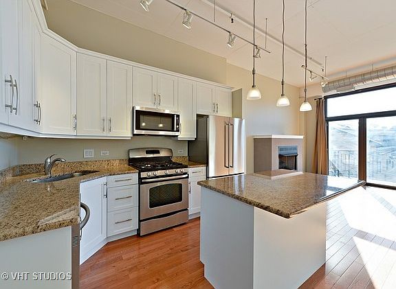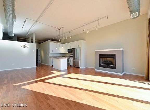 Bright & Spacious 1 bed + den in Hot West Loop. Beautiful Block Y courtyard. Loft features hdwd thru out, freshly painted. Sophisticated granite kitchen w/ white cabinets, island w breakfast bar, s/s appliances with new refrigerator and microwave.Full size dining area. Spacious master bedroom w/wall of closets. Large bath w/double sinks. Gas fireplace, ample closet space, in unit w/d. Den can easily be converted to 2nd bedroom. Large balcony. Garage parking additional $25k. #20 bus in front of building, short distance to restaurants/bars, Randolph St and Skinner Park!