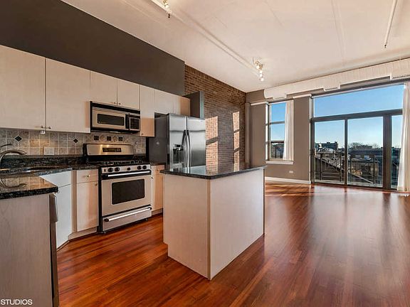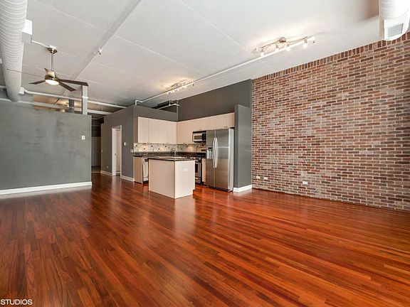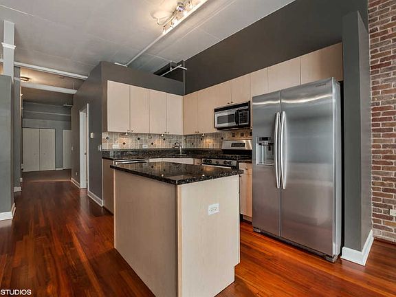 Beautifully updated one bed, one bath Condo in the West Loop. This 4th floor condo offers everything you're looking for and more! Bright and open floor plan, hardwood floors, soaring ceilings. Dining room/living room, accented with a chic brick wall, has sliding glass door access to your private balcony where you can take in the sweeping city views. The updated kitchen features granite counters, island, stainless steel appliances, tile backsplash and a generous amount of cabinets! There is also a den area that will make the perfect spot for a home office. The master offers two spacious closets, both the custom organizers and the updated bath with a gorgeous tile surround tub/shower and a granite top vanity with storage below completes the home. Walk to shopping, dining, nightlife, park and public transportation! One assigned parking space included with sale.