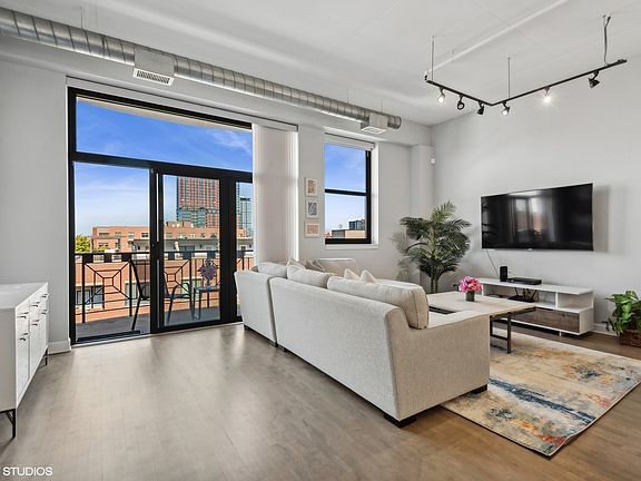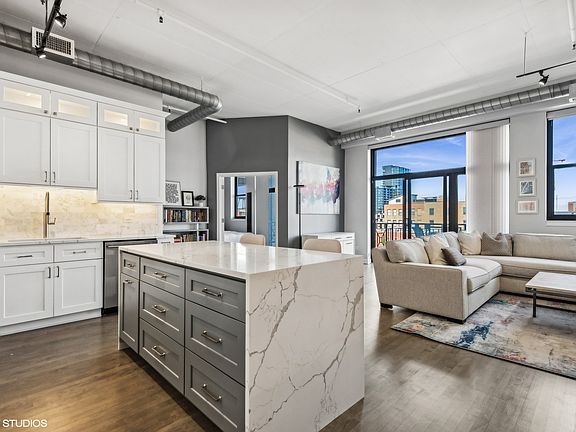 In one of the most bustling, vibrant and exciting neighborhoods in the nation, this extra large WEST LOOP condo hits the spot! At a whopping 1500SF, this is one of the bigger two bed, two baths in the area. The residence has been fully updated and is as turn-key as they come. With skyline views and an abundance of natural light, this high-floor home offers it all. Upon entry, there are chic elements galore starting with newly redone hardwood floors paralleled by soaring ceiling heights. The living room is expansive and offers a private covered balcony to soak in the city energy and sunshine. The open concept new WHITE kitchen is gleaming with shaker style cabinets, timeless quartz counters on your big island with a matching full-height quartz backsplash and all new SS appliances. The designated dining nook fits a big table that elevates the space. The true split floor plan is convenient with both bedrooms FULLY ENCLOSED and on opposite sides of the unit. The primary offers its own second private balcony, walk-through Sex and the City closet and attached bath. The en suite facilities are stunning with new modern finishes, a stylish walk-in shower with bench and dual vanity. Alluring tile feels luxury plus extra storage was added to complete the show. In-unit laundry! This home has two entrances / two foyers for ultimate convenience. Awesome boutique, elevator building close to everything but super serene and quiet. Well-run, proactive association with low assessments. Access to interior courtyard with lush grounds and koi pond. Attached garage parking included! Guest / Guest parking options are always available. Boutique gym takes up the commercial space. Extremely walkable to Whole Foods, Marianos, the best culinary experiences in the city up and down Randolph, Lake and Madison. Sushi galore, pizza out your front door, coffee shops, cozy breakfast spots, fitness, salons, parks, dog parks, transit and more. Easy access to 290 highway. There's a reason everyone is talking about this special space!