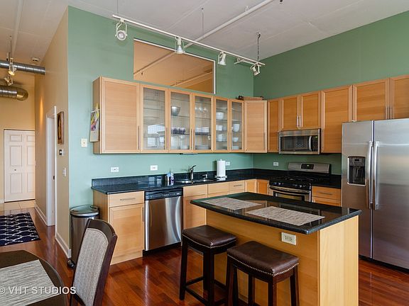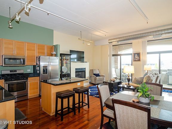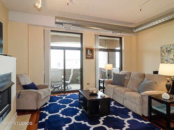 Spacious concrete soft loft in the heart of the West Loop at Block Y! Updated kitchen has tons of cabinet space, beautiful granite countertops with island breakfast bar and stainless steel appliances. Other unit features include gorgeous hardwood floors throughout, gas fireplace, brand new in-unit washer/dryer, central air and large covered terrace with north and east city skyline views! Open floorplan is perfect for entertaining. Master bedroom has large walk in closet with additional room for storage as well as both bedrooms are fully enclosed. Floor to ceiling windows allow for tons of natural light. Great walking location to all the west loop has to offer including Randolph/Madison/Fulton St. restaurant row, shopping, many public transportation options and United Center. One heated garage space included in price.