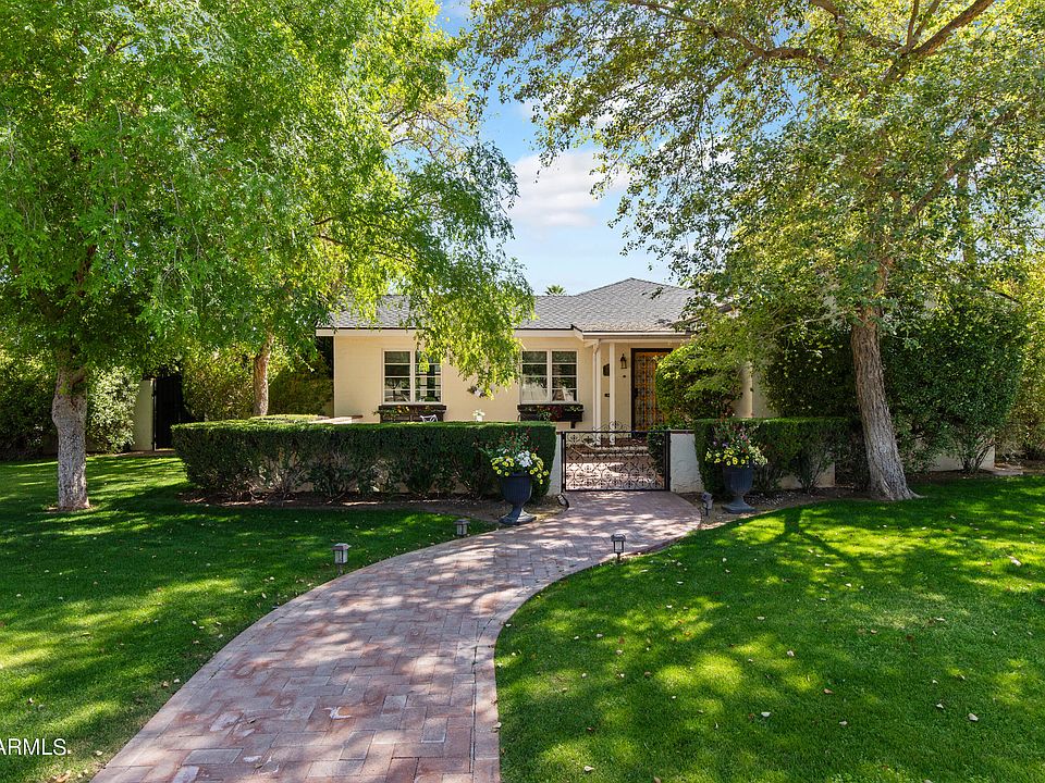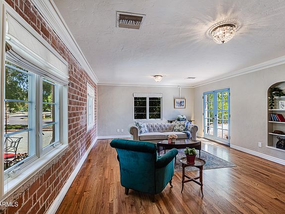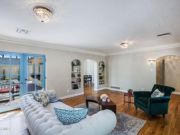 This is Encanto Palmcroft at it's best from the moment you walk up the beautiful brick pathway to the welcoming front patio. Enter a formal foyer that open to a spacious living room with french doors to an entertaining patio accessible from the living or formal dining room.Both rooms have arched built-ins perfect for books or momentos.The kitchen has great cabinet & counter space, and a wonderful VIKING range!A pressed metal ceiling finishes the space off beautifully! The wood floors continue through all of the bedrooms and custom tile is featured in both baths not to mention dual pane windows and a newer roof. The private back yard is as incredible as the front with a raised brick patio, mature trees, dog run, two-car garage and space for a pool. This is truly an exquisite home!