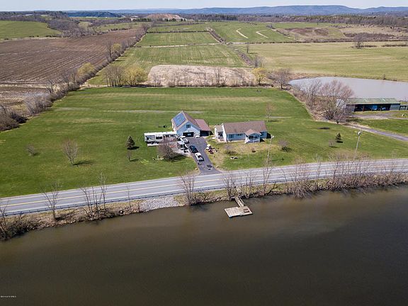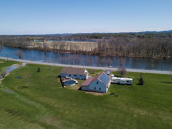 Lovely ranch on 5 acres with 400 ft of water frontage on Hudson River. Dock on river. Home offers 3 bedrooms 2 full baths, large open kitchen overlooking dinning and family room with pellet stove. 30 ft x 50 Ft Garage with car lift, separate heat, total hook ups on property for RVS. This home will not last long. Great location only minutes to Saratoga