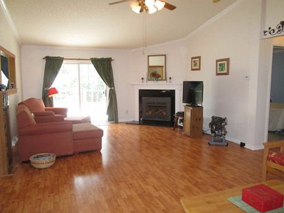 Large great room w/corner fireplace. Appealing kitchen has wall oven, dishwasher, cooktop, refrigerator and bartop. Also dining. Neat & clean, well cared for. Split bedroom plan. Back deck.