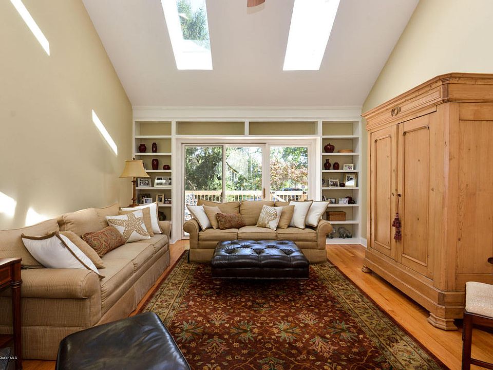 - Interior: Attic - Pull Down Stairs, Built-Ins, Dec Molding, Recessed Light, Sliding Door, Skylight, Den