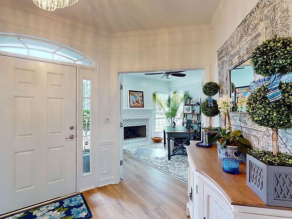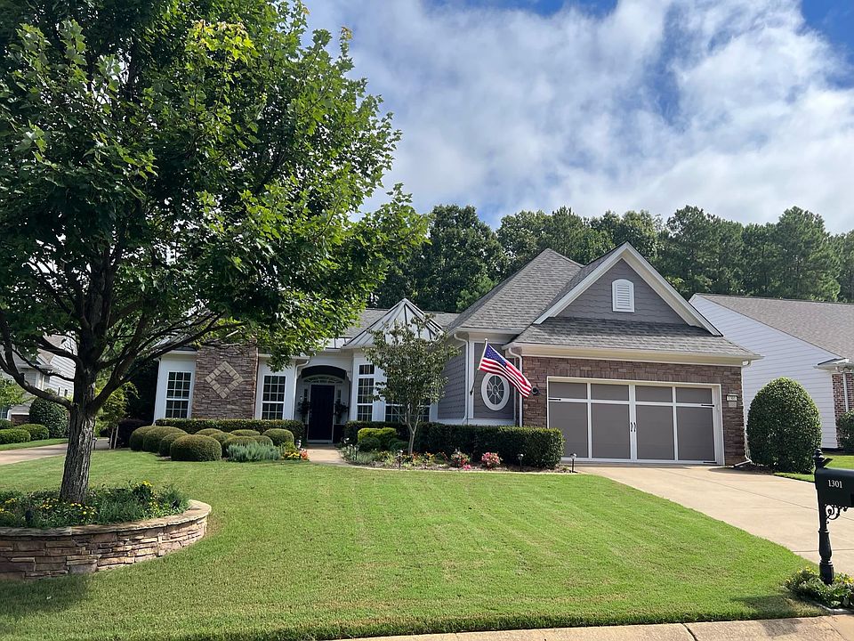 As you cross the Threshold of what has been called the best home in Del Webb by the top Realtors, you will notice Natural Light bathing the open-space-concept of Living Room, Kitchen, Dining Room and 13’ x 21’ Windowed Sun Room completely updated in 2022. Shift your gaze through the walls of Windows to the very private manicured yard with 13’ x 21’ covered outdoor room with vaulted ceiling, wood burning fireplace and 72” ceiling fan. A short (1 minute) walk down the wide path and you arrive at the covered Lakeside Pavilion (site of numerous HOA functions) with views of the lake, 37 Community Boat Docks, Community Boat Launch and Kayak Storage Area. A comparable new home from Del Webb would cost over $700,000, take 7+ months to build, have no mature landscaping and be up to 2 1/2 miles from the lake. Please review the attached 1301 Waterfront Upgrades document. Gated Del Webb is the perfect community for the casual or non-golfer seeking to economically enjoy Lakeside living without spending tens of thousands of dollars in Golf Memberships and Monthly fees of well over $1,000 per month.