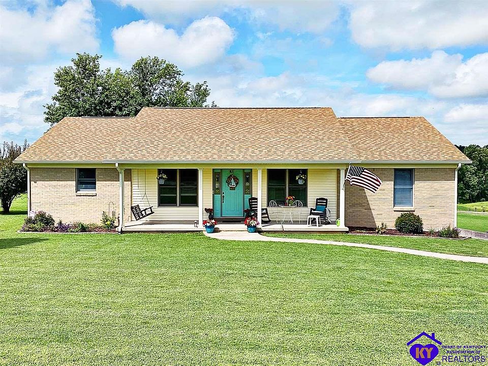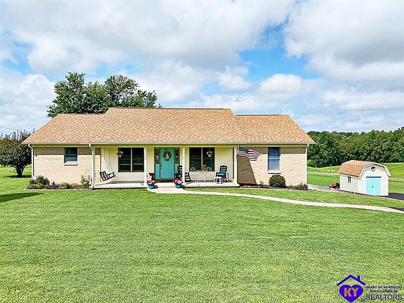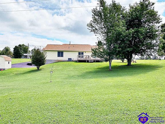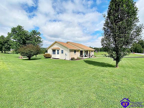 Come tour this well maintained ranch home situated on a 1.24 acre lot. It has over 2,000 sq feet on main level with an additional 1,200+ sq feet of living space in the basement. 3 beds, 2.5 baths, oversized garage, extra storage space, shed, new roof, new driveway, new gutters, downspouts and more. Minutes from town but outside the city limits. Quick access to 65 and Ft Knox. Call to schedule a showing.