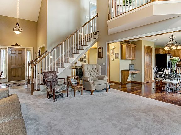 2000 sq ft 3 BR, 2 full and 2 half bath home with 3 car garage. Two story vaulted ceiling in the great room and open foyer with ceramic floor leading to the natural wood U-shaped kitchen with custom Grabill cabinets. All upgraded stainless appliances in the kitchen remain along with the washer/dryer. The home has a spacious floor plan with the master bedroom located on the main level with a bay window. Huge master bath w/corner garden tub, double sinks with raised counters, huge walk-in closet and shower. New carpet and pad on the main level and up the stairs. Cathedral ceiling and trapezoid window in loft with a juliet balcony overlooking the great room. Steel attic door leading from the 2nd floor to the walk off attic. Wood flooring in the foyer, kitchen, & nook. Opened finished stairs to the partially finished basement includes 9' ceilings, natural lighting with 1/2 bath. LL is wired for surround sound. Nice mix of natural and painted woodwork. 92% energy efficient Trane furnace. Water heater 2 years old. Great location!