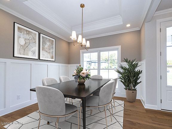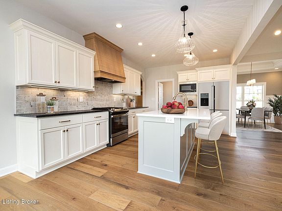 This custom-built home is located in the Homearama neighborhood of Dove Point Estates. Features: 5 spacious bedrooms and 3.5 baths. As you walk through, you'll notice custom details like the wainscoting, exquisite lighting, vaulted ceilings with custom built beams. This home boasts superior craftsmanship and trendsetting design. Inside you will have the perfect atmosphere for entertaining with its open concept living, kitchen, and dining area which leads directly out onto the covered deck. The well-equipped kitchen comes complete with custom cabinetry, classic back splash, and a stainless gas range. The spacious primary bedroom is an absolute retreat, complete with an oversized walk-in closet and a beautifully designed tile shower. In the lower level you will find a large entertaining space complete with a wet bar. The lower level also includes a full bath, a home office, and an additional 2 bedrooms. There is plenty of storage in this house including lots of closets.