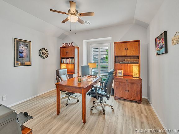 Better than new! Over $25k in incentives! ALSO, BRAND NEW stainless fridge stays $3000 value. Smart home PLUS security system with cameras stay. Patio TV & mounts stay! Over $6k in custom plantation shutters. PLUS brand new cedar fencing. ALSO extended driveway, patio & walkways. New Luxury Vinyl plank flooring throughout, open concept, rare 4 bedroom, PLUS 2.5 baths. Breakfast bar PLUS formal dining room. All the upgrades not included with a brand new build make this property an exceptional value. Call for a full list of upgrades. Owasso schools & Morrow elementary is just a few minutes away. Convenient exit off 169 in Owasso.
