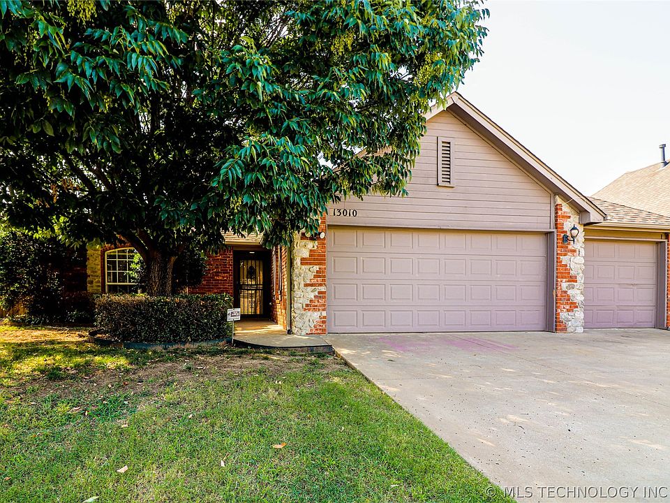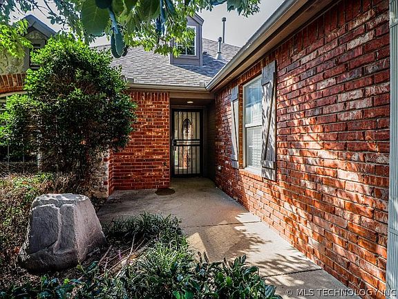 Cozy home with curb appeal brick & stone exterior. New roof in 2017, 3 bedroom, 2 bath 3 car oversized garage. Kitchen has stainless steel appliances, custom cabinets, and breakfast nook. Arched openings with 9ft ceilings and a huge 10 ft ceiling family room. Security system, programmable thermostat, fireplace with gas logs. Master has whirlpool tub and separate shower. Covered porch and French door leading out to a large, private, covered back patio with 2 sides enclosed. Privacy fence. Wheelchair accessible. Union Public Schools. Centrally located with quick access to Highway 169 and the Broken Arrow expressway.