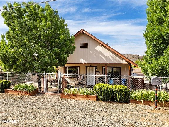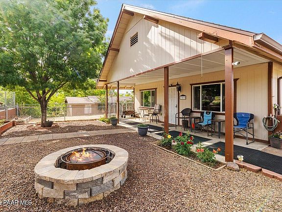 Best of Mayer! This home does not even compare to any other home nearby. Pull into the automatic gate and let your imagination run wild there's so much space to play with on this fully landscaped and fully fenced .59-acre lot, featuring mature trees, an outdoor fireplace, and a brick building with endless possibilities. Additionally, there are two large sheds for storage. But wait, did you say storage? There's more! A finished room under the house is perfect for a workshop, along with even more storage beneath the home. You'll find plenty of parking for RVs and toys.Step into your new home and discover an open living room and kitchen. Want to entertain? This kitchen boasts counter space for miles, ample storage, and a THOR 6-burner oven. Don't miss the large back deck made with sturdy,