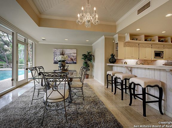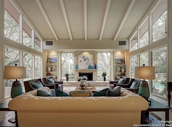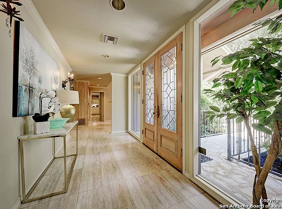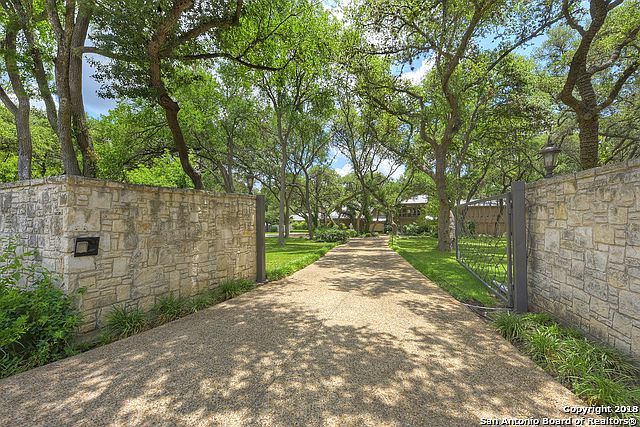 Experience the luxury of an architect designed walled estate sequestered within the heart of central San Antonio NW corridor. Almost 3.5 acres of lush canopy offers inviting spaces, inside & out. Glorious natural light floods every room while spectacular vistas greet you from every window. Private full-size tennis court & lap-sized pool afford the extravagance of seclusion in the the middle of the city. True master retreat offers discreet courtyard, sitting area.