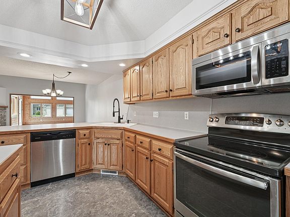 Step out on the back deck and take in the view of hole 10 on the Chisago Lakes Golf Course—perfect for morning coffee or an evening unwind. Inside, the kitchen is designed for gatherings—whether you’re serving up game-day snacks, hosting holiday dinners, or mixing cocktails with friends after a day on the course.