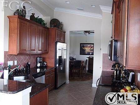 Nestled in one of Ft Myers most prestigious gated communities, The Verandah. This outstanding home offers granite counters, stainless appliances, rich wood cabinetry and large tile set on a diagonal. High ceilings boast crown molding and decorator lighting fixtures and ceiling fans. Spacious rooms include an oversized media room/3rd bedroom, as well as plantation shutters throughout. Oversized tiled lanai is great for entertaining guests. Conveniently located to shopping and dining. Easy access to major highways and the River District. Brokered And Advertised By: Sylvester Realty, LLC Listing Agent: Dianne Carol Sylvester