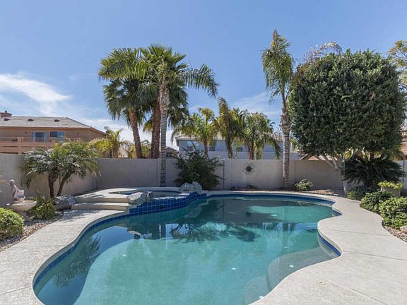 This well-maintained home offers 4 bedrooms & 2.5 baths in 3126 SqFt with separate living, dining & family rooms. The eat-in kitchen has been nicely updated with granite countertops, glass tile backsplash, gas cooktop & stainless appliances, including double ovens! French doors lead out to a resort-style backyard! You'll love the newer pebble sheen salt-water, heated pool & spa with in-floor cleaning, built-in BBQ w/counter seating, firepit, water feature, lush green grass for kids & pets to play on & full-length covered patio. The huge master retreat has double door entry, sliding doors to the patio, walk-in closet & private bath with dual vanities, jetted tub & oversized shower with extensive use of travertine. Other features: 3 car garage with storage cabinets & service door, RV gate,* storage shed, 40 SqFt storage room, central vac, laundry room with cabinets, sink & storage closet; surround sound, wi-fi thermostats, water softener, 2-way gas fireplace, built-in bookcases, vaulted ceilings & MUCH MORE! See this home today!