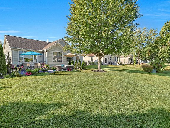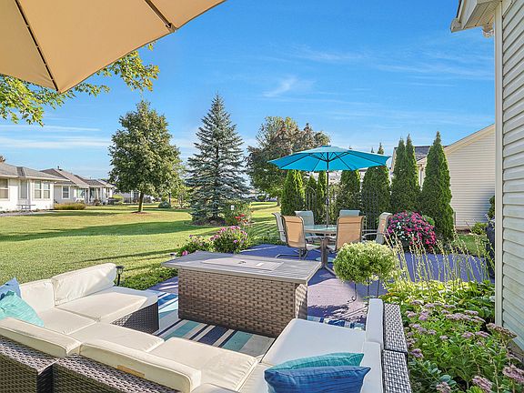 Don't miss this beautifully maintained Grand Haven model situated on a larger, professionally landscaped lot! This inviting home features upgraded Bamboo hardwood flooring in the main living areas and a stylish kitchen with stainless steel appliances and sunny breakfast area. The spacious primary suite offers a walk-in shower, soaking tub, and generous walk-in closet. The partially finished basement provides a perfect retreat for visiting grandkids and includes a crawl space for extra storage. Important updates include a new roof (2018) and furnace, A/C, and water heater (all just 3 years old). Step outside to a private patio for peaceful evenings, and enjoy the convenience of an irrigation system. This is a wonderful opportunity to experience the resort-style living that Del Webb is known for-don't let it pass you by!