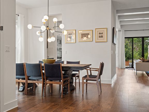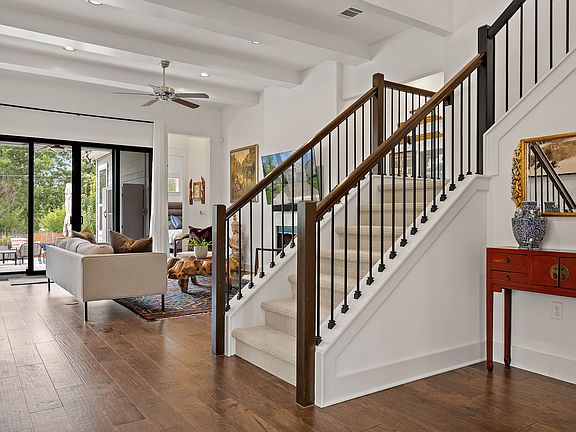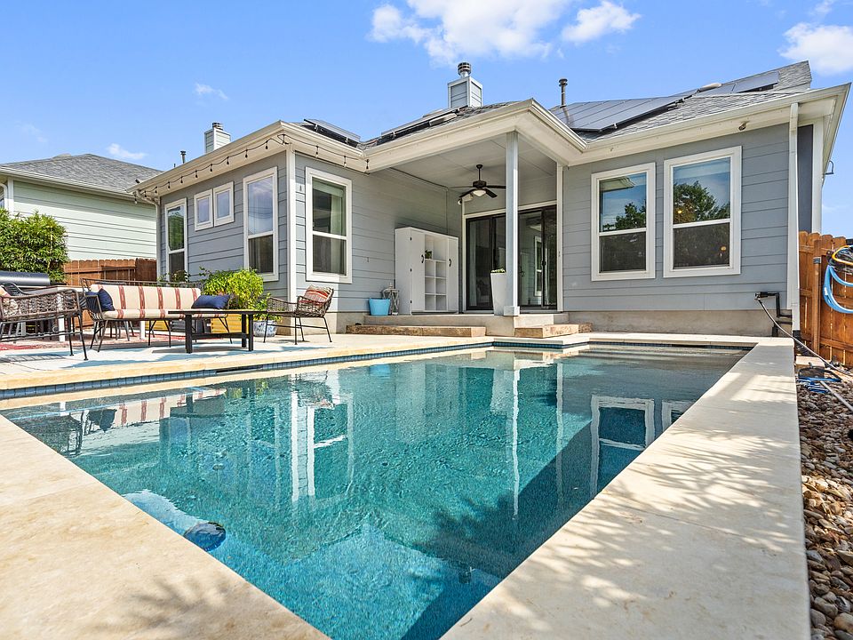 The perfect urban retreat in North Austin has just hit the market. A stone's throw from the Apple Campuses, the popular shopping and dining at the Domain, the newly begun business and shopping development covering 156 acres at Pearson Ranch, and Walnut Creek Parks miles of stunning trails nearby, this home is in the heart of the "New Central Austin." One of the younger homes in the area from 2016, it is one of the only east side of Mopac homes zoned for Summit, Murchison and Anderson. The upgrades on the interior of this home are extensive: upgraded marble countertops in the kitchen and dry bar, silestone in the guest bath, upgraded lighting in dining, kitchen, primary bedroom, and bathrooms, Nest thermostat, premium engineered hardwoods, a five burner stovetop, double oven, restoration hardware mirrors in the downstairs bathrooms, two 220 volt car chargers in the garage that get the homeowner EV ready, recently added Anderson sliding doors that open elegantly onto the back patio and many more too plentiful to list. The outdoor upgrades continue to delight with multiple developed trees, natural privacy provided by bamboo in custom planters, custom metal trellises, river rocks and boulders, a xeriscaped side yard on one side for guests to enter the backyard oasis, cabinet storage, a patio with permeable pavers, solar panels and a stunning modern heated pool for the whole household to enjoy. This house is the perfect entertainer's paradise with a seamless outdoor and indoor useable space and an open floor plan kitchen. With four bedrooms, an office and three baths a pool, and a low-maintenance backyard, this home will be the sanctuary of a lifetime.