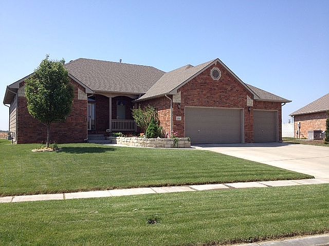 This property is located on the Southeast part of Wichita, close to Spirit factory, Air Force base, and Beechcraft. The subdivision is Sierra Hills with great views, golf course, Millers farm mountain bike trail, horse stables, riding area, very nice sidewalk, community pool, playground and a club house next door. This split ranch single family home is immaculate with high ceilings, maple finishes, Corian counter tops, two gas fireplaces, large walk in pantry, large deck with great views, huge master bedroom with large Jacuzzi tub, walk in closet, basement wet bar, wine closet, child's play house, large storage room, large three car garage, efficient heating and air conditioning, high-end security system, fully fenced back yard, and well with sprinkler system. It has 3,100 square feet of living space with 3 bedrooms and 2 bathrooms on the main floor and 2 bedrooms and 1 bath in the basement. Partial furnishings including, 55" TV, sectional, Brunswick pool table, wine cooler, and mini bar frigerator in the basement are included. Additionally, a washer, dryer, lawn, trash, HOA dues, and pool pass are included with the lease. One year lease minimum but will give preference to two year lease applicants. No pets. (one small pet that is house trained could be possible) Must have good credit and references
