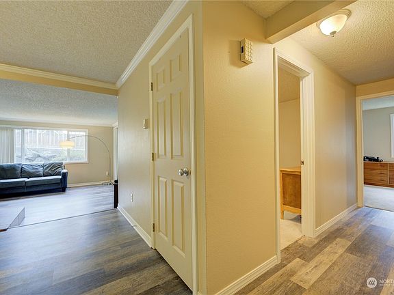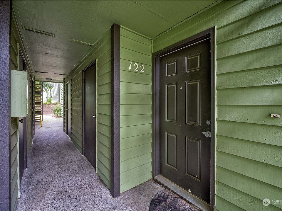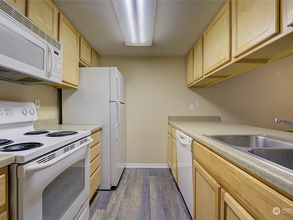 Welcome to this conveniently located ground level 2 bed, 1 bath, near the 128th St Park & Ride. Close to the vibrant Mill Creek Town Center w/its array of shops & dining options. Commuting is a breeze w/quick access to I-5, 405, & Hwy 99. The unit itself comes complete w/washer/dryer, approx. 1 year old, and new laminate flooring. Cozy up by the wood-burning fireplace & slide open the door to the south-facing covered patio, which offers a great space for outdoor grilling. The kitchen features a breakfast bar that opens to the dining area. Primary bedroom w/spacious walk-in closet for all your storage needs. As an added bonus, the property comes w/transferable Fidelity National Home Warranty for peace of mind.