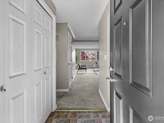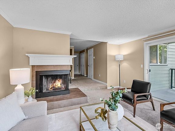 $5000 Seller credit towards Buyer Closing Costs. Welcome to Parkridge Condominiums, located in the heart of the Lake Stickney community! Bright & sunny corner unit features a spacious floor plan w/ a sunken living room, a double-sided wood-burning fireplace, and a covered balcony perfect for BBQs and watching the sunset. Galley kitchen w/warm wood cabinets, eating bar & all appliances, includes full-size W/D. Large primary BR features walk-in closet with direct access to a full bath. Secondary BR & Storage closet. Low $420/month HOA dues-water, sewer, garbage & common areas. Pet-friendly. Community playground. Located near Boeing, I-5, shopping, McCollum P&R, & Lake Stickney Park, Interurban Trail & Mukilteo schools & Lynnwood light rail.