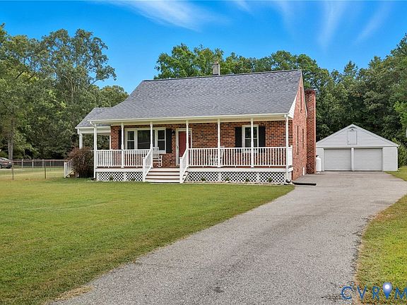 Step into a cozy brick home built with lumber made from the trees that originated on the property. The 1.8 acre property has a detached two car garage with storage area/lean to and a 40x 50 Quonset hut-that provides space for an office and Plenty of storage. The great outdoor porches and screened in back patio porch are great for quiet moments or lively entertaining! This move in ready freshly painted property features a first floor primary suite fully renovated bathroom with a walk-in tiled shower. Two additional bedrooms are upstairs with a half bath. The spacious kitchen has an inviting eating area . A laundry room /mudroom close by with ample working space. The family room has a brick fireplace with gas logs. An additional front room for added living space. Added features include newer roof approximately five years old, updated septic two years ago, new well eight years ago, electric heat pump with propane heat back up and upstairs a new mini split.