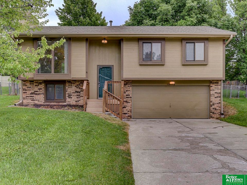 This beautifully updated home sits in a desirable neighborhood, just a few blocks from Standing Bear Lake! Main level includes all three bedrooms, large living area and eat in kitchen with luxury vinyl plank flooring and a soaring, vaulted ceiling. The main, full bathroom includes a Luxurious, tiled bath/shower, and gold accents. The primary bedroom features a large, walk in closet and a sink, mirror, and vanity light, accented with gold. The basement has a large living space and a 3/4 bathroom.