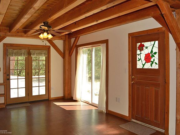 This magical, hand-crafted timber frame home was built with love, the help of friends and timbers from the land. The open framing and extensive use of wood finishes invite one to slow down, relax and stay awhile. The 10 acre ridgetop parcel overlooks the South Yuba River at Edwards Crossing and boasts river, mountain & big sky views. Southern exposure, end-of-the-road seclusion and a profound sense of peace and quiet are found here. South Yuba State Park and BLM lands surround the parcel. Small detached quest house with detached bath house, a workshop or garage, good garden areas with lots of sunshine, and a greenhouse complete the scene. A private trail easement goes to Spring Creek Falls and the Yuba River at Mountain Dog swimming hole.15 GPM well at last test,a holding tank for gravity irrigation, off the grid, owned solar system with backup generators. Just 30 minutes to Historic Nevada City. Locked gates on Mountain Spring Road. Cash offers preferred. Sorry, no owner financing