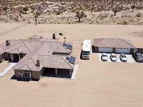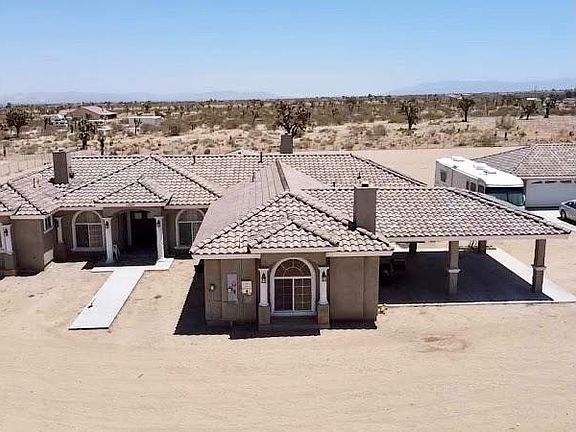 This beautiful open floor plan Custom home has it all! 5 bedrooms and 4 full bathrooms. Top of the line gourmet kitchen features built-in island, stainless steel appliances, sub zero refrigerator, double oven, 6 burner gas range with hood for the aspiring chef. Cozy family room with a fireplace and built-in fish tank.The home also has a Theater room ready for your personal touch and entertainment. The Master Suite combines a fireplace, stunning panoramic views, enjoy your morning coffee from bed and watch the sunrise illuminate the High Desert. Bathe in your own luxurious private spa with natural light from the large window. This lavish Master Bathroom features a large Roman tub, separate shower stall, dual sinks and walk-in closet. In addition this home includes Solar Panels, home office, beautiful hardwood flooring, dual pane windows, laundry room, tons of storage space and utility closets. Special Features: Backyard Pergola ready for you to build your outdoor Kitchen, Fire Sprinklers, Tankless water heater, Detached 4 car Garage, 2 carport and shed. This Desert Beauty will not last, bring your buyers.